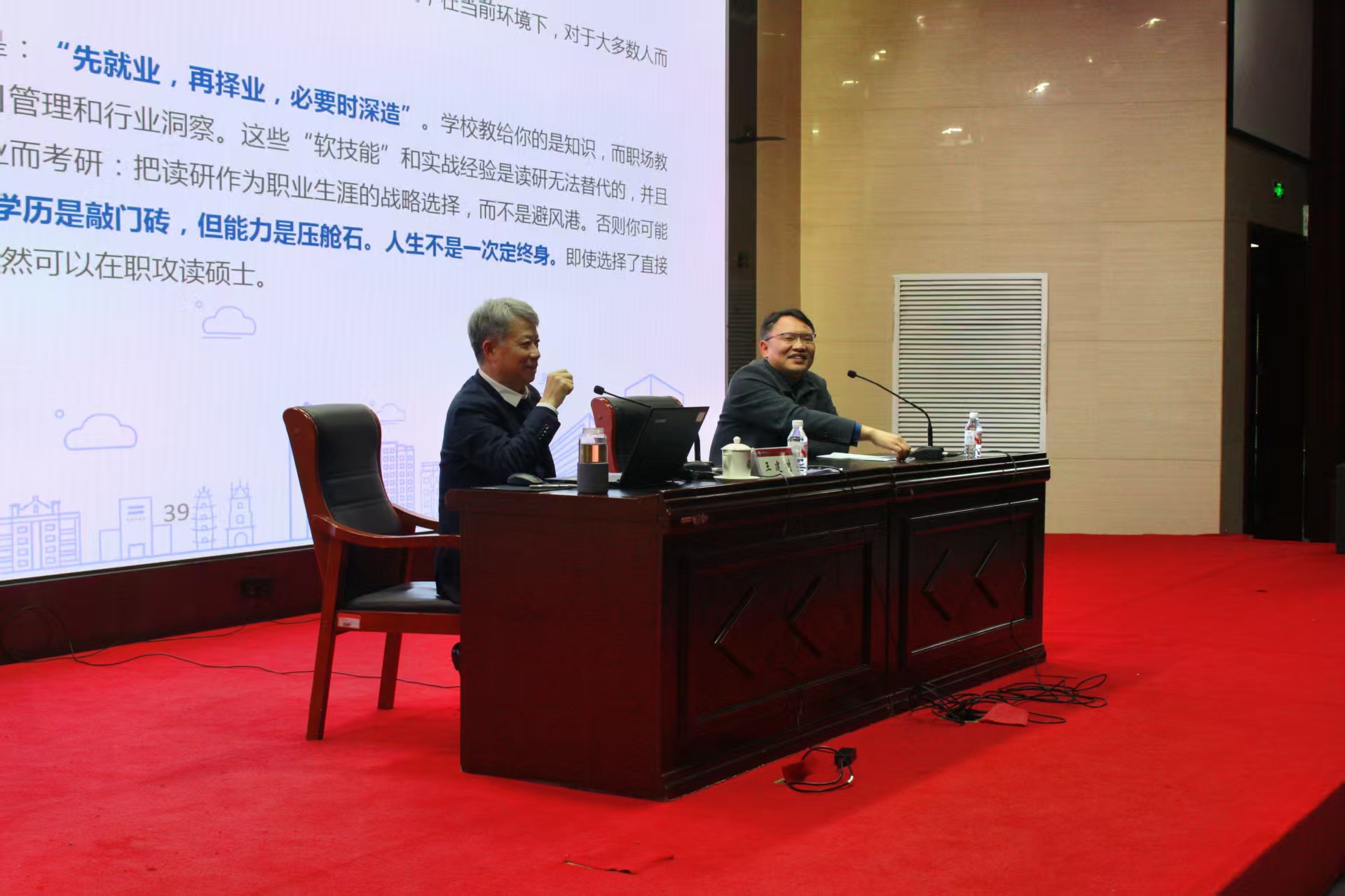 在互动交流环节,针对2025级新生提出的“企业更看重哪些能力?”“大学毕业要不要直接创业?”等问题,王建树一一举例解答。他建议同学们在大学期间,要以课堂书本知识为基础,通过广泛阅读拓展知识边界,注重理论与实践结合,实现 “学以致用” 的知识转化;要主动培养付诸实践、直面挑战的勇气,以积极姿态参与各类实践活动,积累解决实际问题的经验;要密切关注前沿科技发展动态,主动学习专业交叉领域的新兴技术,打破传统知识边界,与时代发展同频共进;要以积极乐观的心态面对成长过程中的挑战与挫折,建立 “成长型思维” 模式,摒弃“回避型心态”,增强自身抗压能力与适应能力。