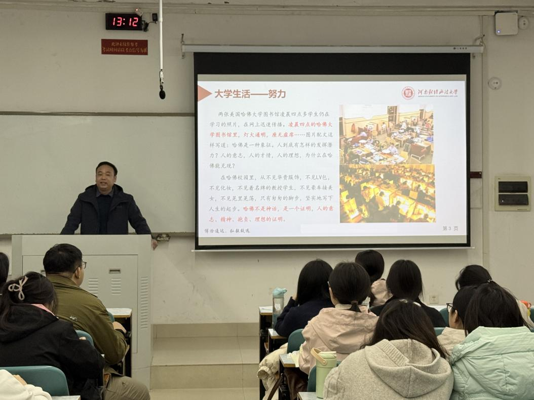 10月21日中午,经世书院2025-2026学年“青马工程”培训班在教二103开班。培训班第一讲由经世书院院长韩亚峰主讲,书院怡1、怡2社区60名青马学员参加,怡2社区团委书记刘忠宇主持。